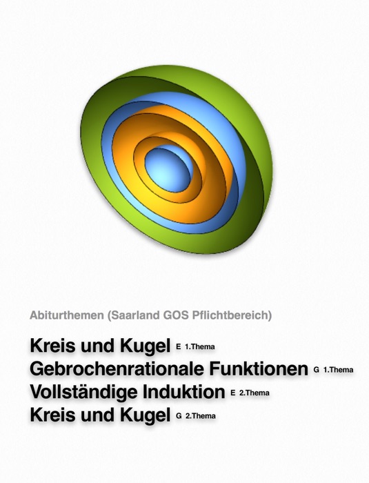 Das Buch beinhaltet vier Abiturthemen : "Kreis und Kugel" (für Kurse mit erhöhtem Anforderungsniveau und Kurse mit grundlegendem Anspruchsniveau), "Gebrochenrationale Funktionen" sowie "Vollständige Induktion". Diese Themen sind obligatorisch für die Abiturtermine 2017 und 2018 in den E- und G-Kursen der Oberstufe im Saarland, und zwar je ein Thema pro Abiturtermin und Kursart.